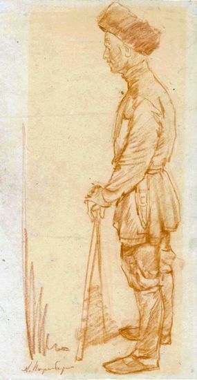 1936. Osetian kolkhoznik. Paper, sanguine. 37x20