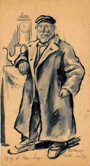 1919. Vinnitsa. Watchmaker. Cartoon, water colours. 35x19.